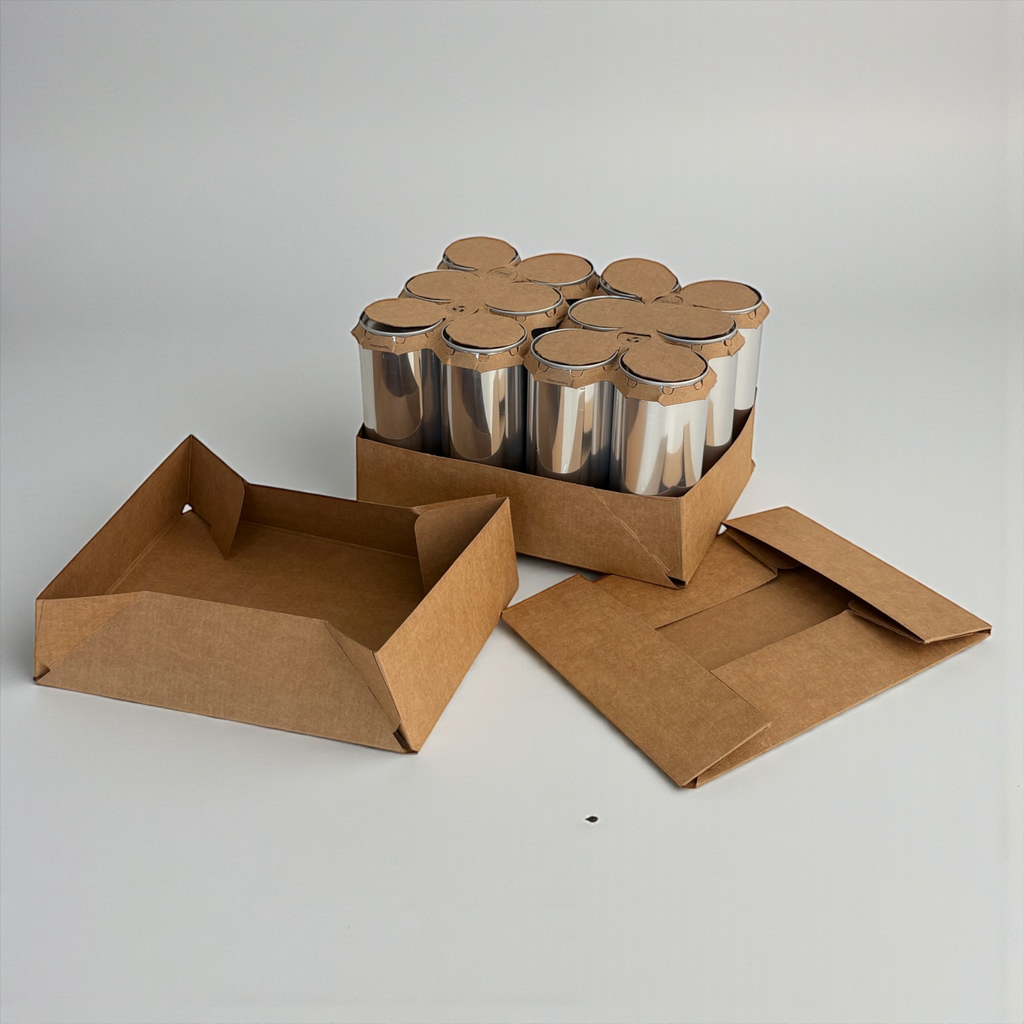 La bandeja para 12 latas sleek es una solución de cartón resistente y de perfil delgado, diseñada para mantener 12 latasagrupadas de forma segura, estable y fácil de transportar. Su cobertura superior limpia y su geometría ordenada mejoran la presentación en estantería, manteniendo al mismo tiempo un formato ligero y eficiente para el almacenamiento y la preparación de pedidos.