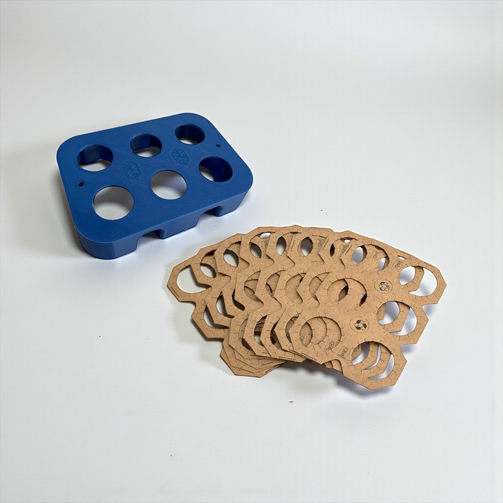 Diseñado para latas standard con fondo 202 (Ø52 mm), este kit es ideal para pequeñas cervecerías, corridas piloto, lotes de prueba o productos estacionales. Ofrece un primer paso práctico hacia un packaging multipack sostenible y con marca, antes de avanzar a soluciones de mayor volumen o sistemas automatizados.